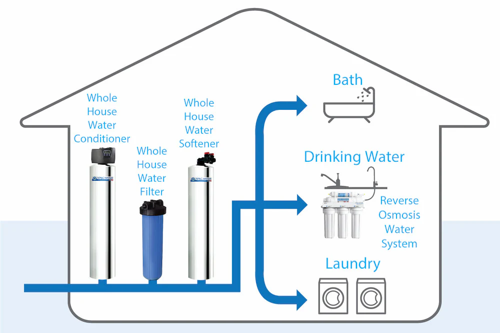 A whole-house water purification system refers to the scientific and rational combination of water purification equipment with different functions to achieve the capability of supplying water of varying qualities throughout the entire home. A complete whole-house water purification system should provide users with at least three distinct water sources: purified water, direct drinking water, and softened water. It typically includes the following equipment:
