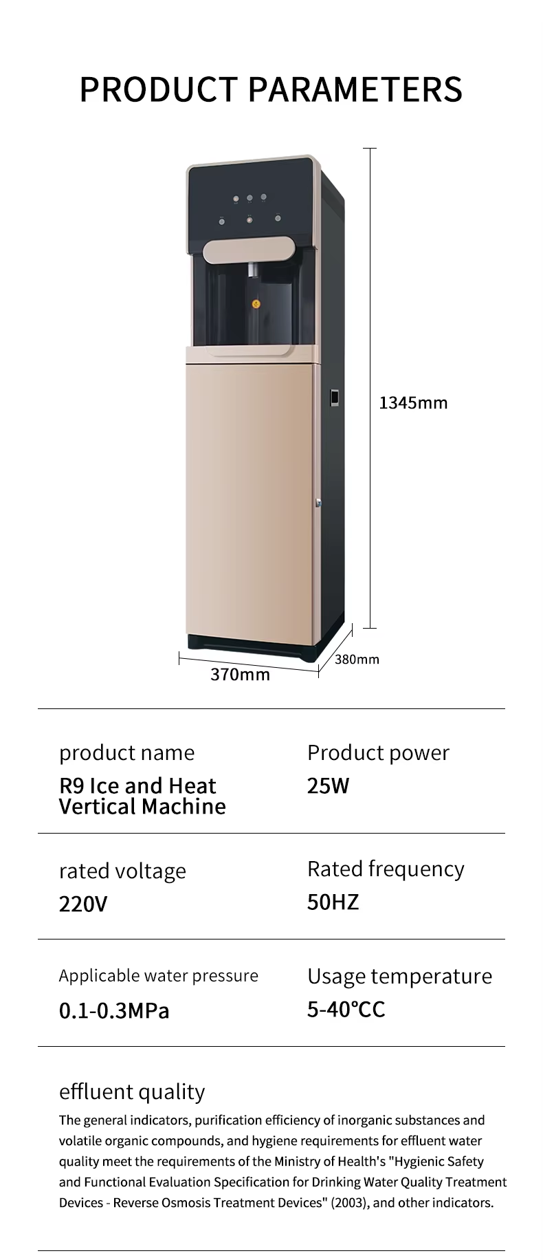| Power consumption function: | Heating: 800W Electronic cooling: 70W (≤15℃) water making power: 30W | |||