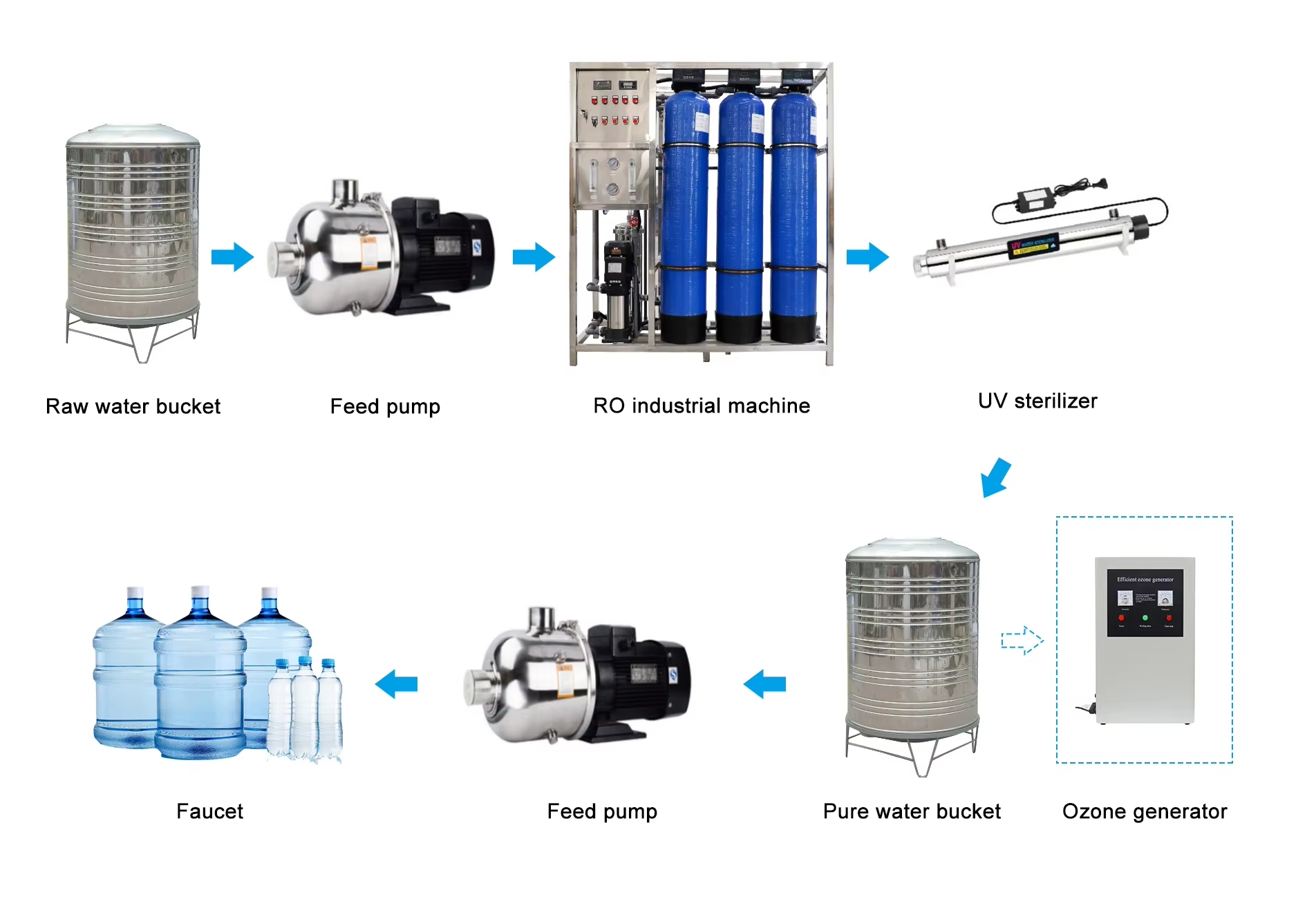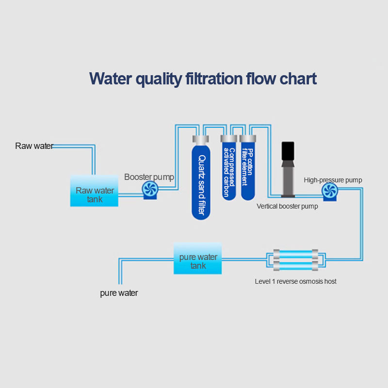 In this system, we add the PLC and touch screen which can help you to make the remote control when you don't have time in local point. 1. With the remote control function, you can use your mobile phone and computer to work in the other place. 2. To achieve the remote control function, you first need to have a hot spot, network cable or WIFI 3. When the device happen any problems, you can be notified in time by phone, SMS and email 4. It will periodically prompt you to replace the filter
