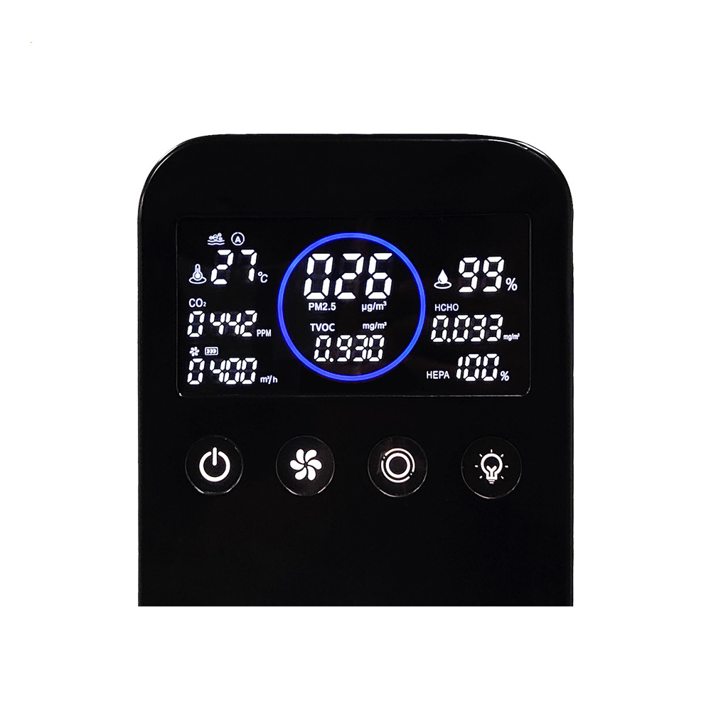 | Function | Air quality indicator ,WiFi, CO2 value, PM2.5 value, TVOC value, HCHO value, Temperature &humidity, Real-time air volume value, Timing, HEPA filter life time(%), HEPA filter replace reminder, Sleeping, child lock |