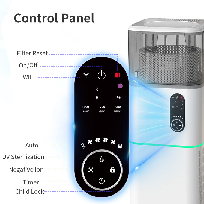 3.Smart and Convenient Control: The D6S Air Purifier features a smart control system, allowing users to easily monitor and adjust the air quality and purification settings from a distance. Connect with your smartphone via Wi-Fi to control and customize the purifier's operation and display real-time air quality data, ensuring a comfortable and clean environment at all times.