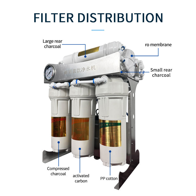 | Filter material | PP cotton+activated carbon+compressed carbon+ultrafiltration membrane+small post carbon+large post carbon | |||