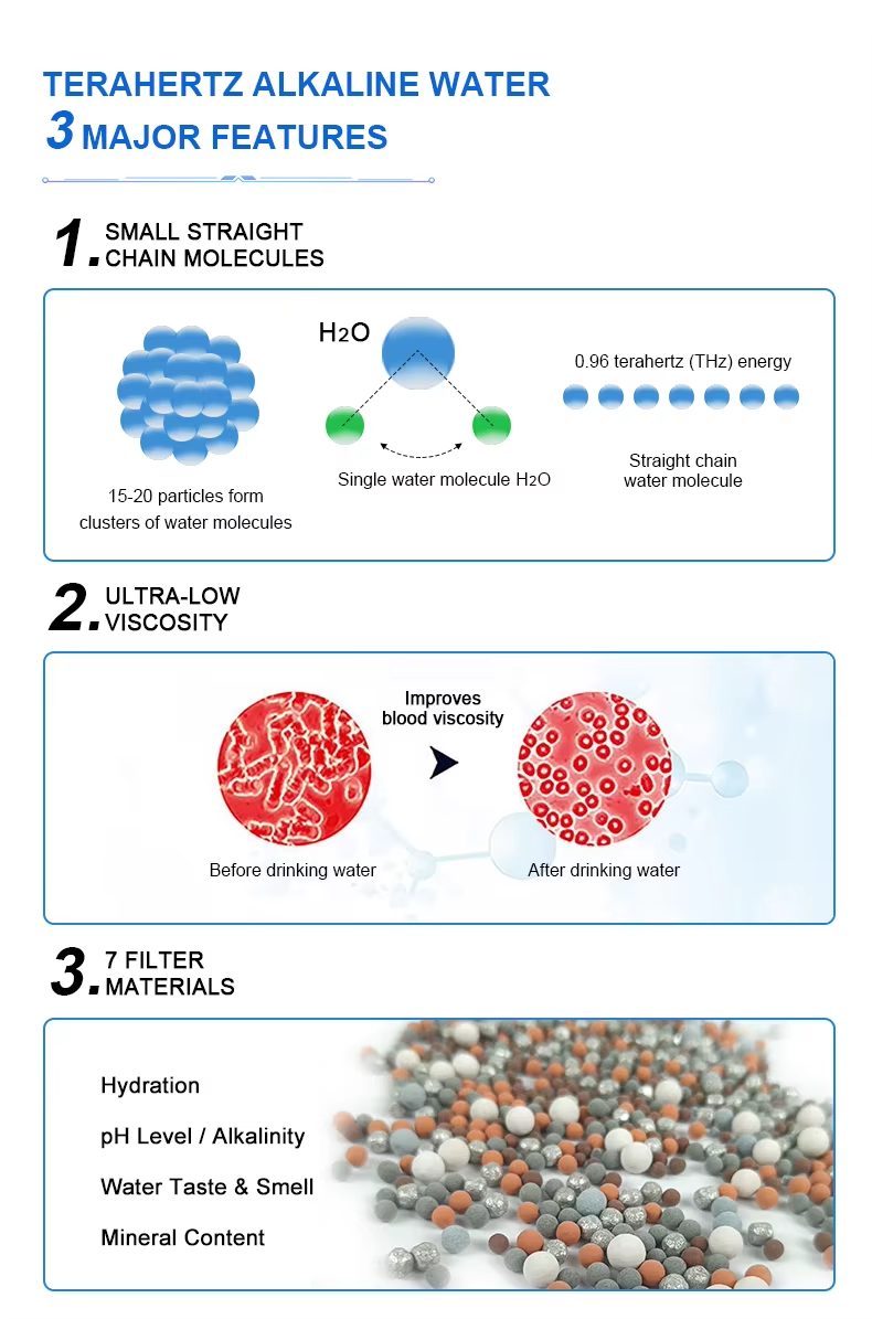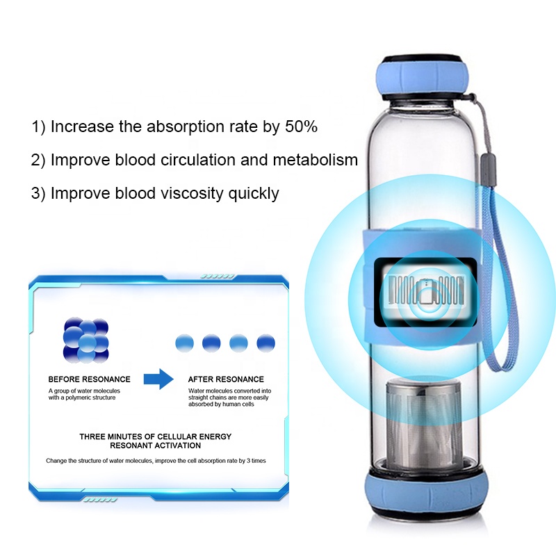 | Material | :Food Grade Glass Bottle + 304 Stainless Steel Cap +Minerals Stone+Terahertz Chip |