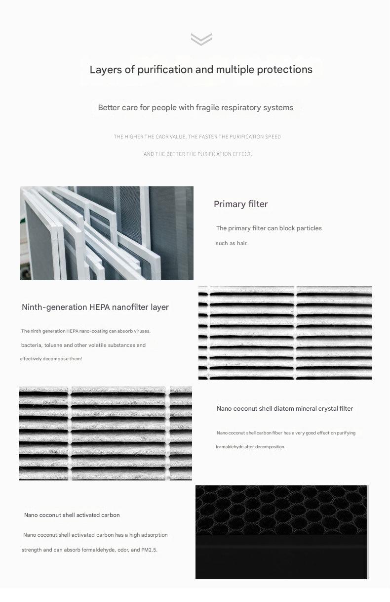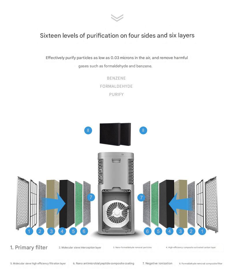 | Product name | Large room air purifier | Clean Air Delivery Rate(CADR) | >780m3/h |