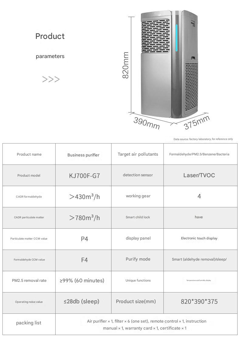 | Model no | KJ700F-G7 | Formaldehyde CADR : | >430m3/h |