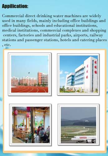 Commercial direct drinking water machines are widelyused in many fields, mainly including office buildings andoffce buildings, schools and educational institutions,medical institutions, commercial complexes and shoppingcenters,