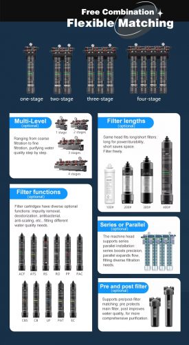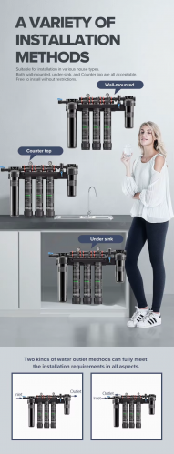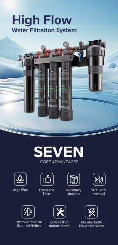 This Whole House Water Filtration System is designed for high performance in commercial and household settings, featuring a maximum water flow of 30Lpm and 0.01um filter fineness.