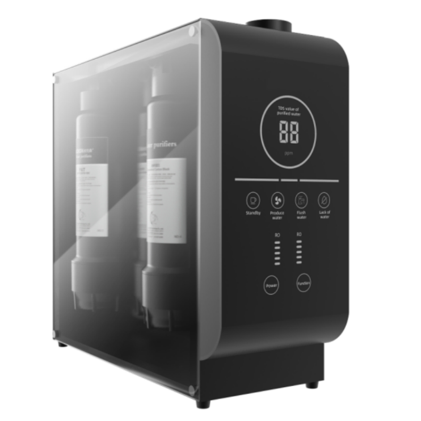 This compact device canbe easily placed either in akitchen corner or on a barcountertop.When placedside - by- side with anelegant coffee machine, itdoesn't look crowded atall.It can not only providehigh - quality water sourcebut also form an aestheticcombination visua lly,enhancing the style of thespace.