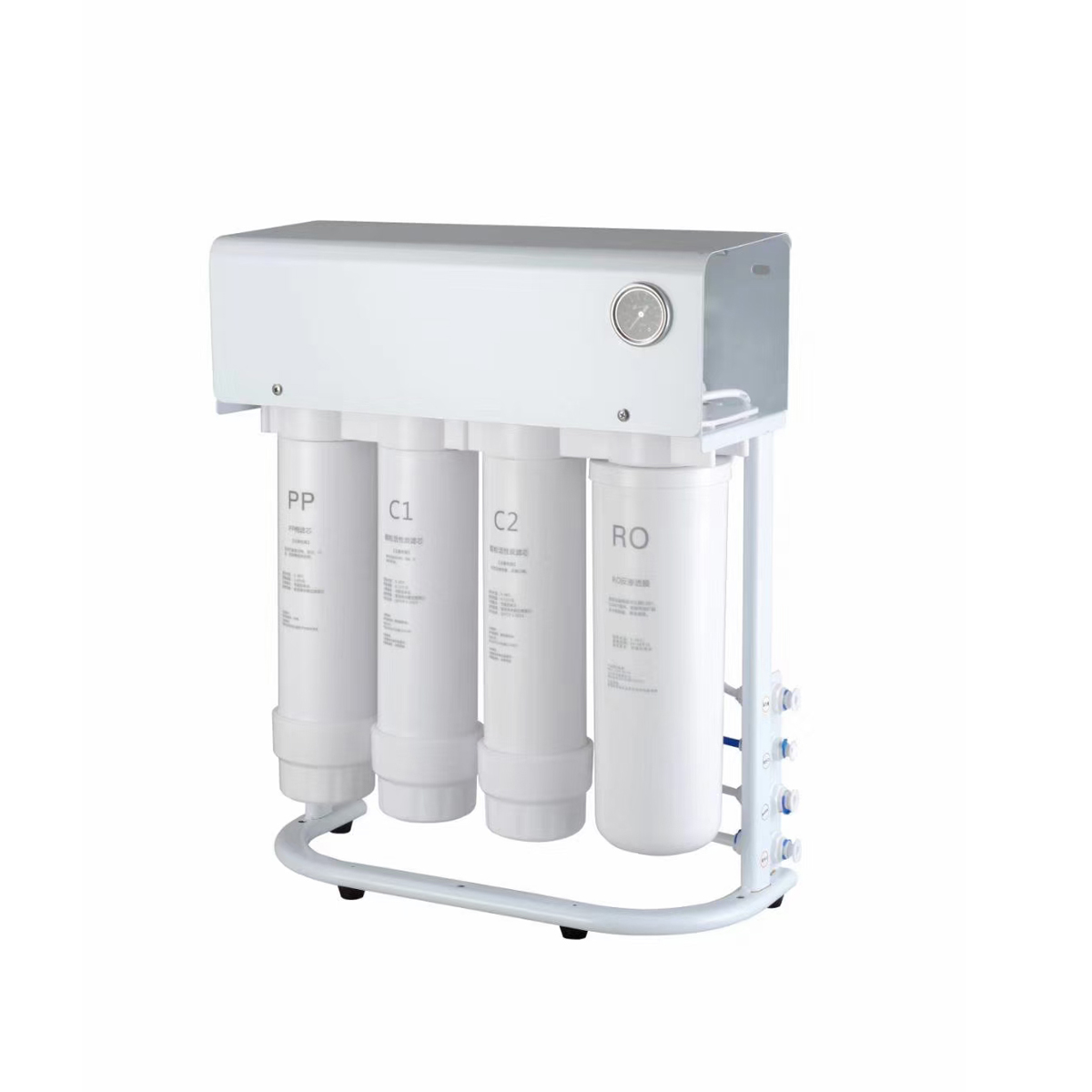 The 400-800G Big Flow Reverse Osmosis Water Filtration System offers superior filtration with a precision of 0.0001 microns, removing over 1000 kinds of contaminants at 99.99%, including fluoride, chlorine, and heavy metals. It features a tankless design with a fast flow rate of up to 0.55GPM@60psi, delivering fresh water in just 7 seconds per cup. Certified by CE, it ensures compliance with EU safety standards, providing market access for buyers.
