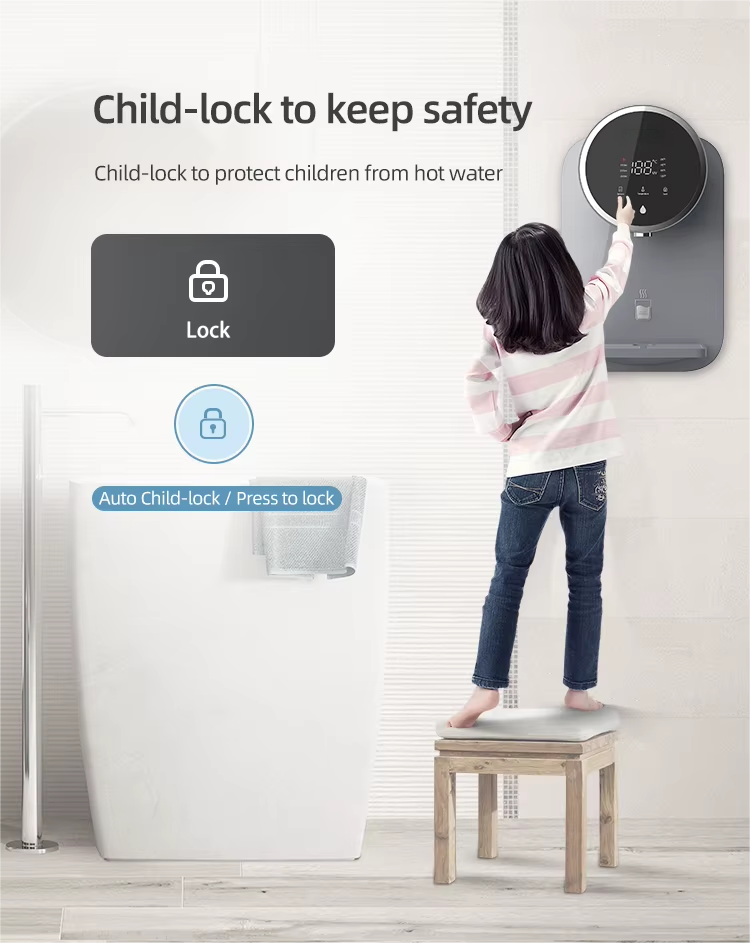 This wall-mounted instant hot water dispenser is designed for household, commercial, and hotel use, featuring instant heating and a flow rate of 1L/M for hot water. It is made of durable plastic with a sleek black, white, or gray finish. The product is CE and EMC certified, ensuring compliance with EU safety standards and providing market access assurance. Backed by a 1-year warranty and free spare parts for after-sales support, it guarantees reliable performance.